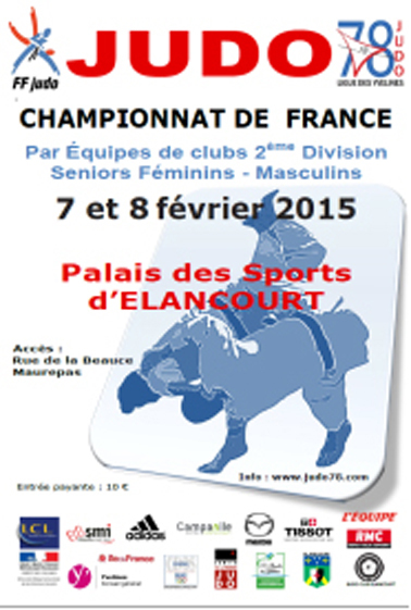 Le club a le plaisir de vous inviter aux Championnats de France 2ème Division par Équipes de Clubs le 8 février 2015 au Palais des Sports d'Élancourt, rue de la Beauce.