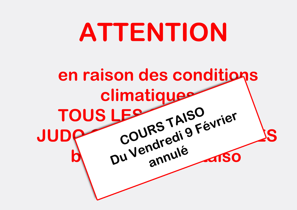 En prévision d’un nouvel épisode de neige pour vendredi, le cours de Taiso du vendredi 9 février est annulé.